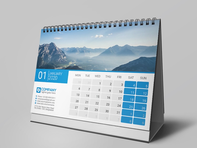 تقویم رومیزی انتخابی ایدهآل برای میز کار، میز مدیریت یا میز پذیرش است. این تقویمها معمولاً در ابعاد جمعوجور طراحی میشوند و پایهای مقاوم دارند. تقویم رومیزی به دلیل قرار گرفتن در مقابل دید روزانه افراد، یکی از مؤثرترین انواع تقویم تبلیغاتی به شمار میرود.