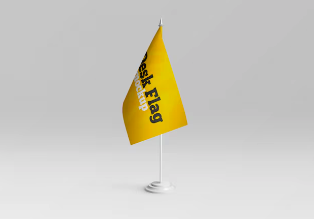 از طرحهای ساده و واضح استفاده کنید. لوگو باید در مرکز قرار گیرد و متنها خوانا باشند. به خاطر داشته باشید که پرچم رومیزی از فاصلهی نزدیک دیده میشود، پس وضوح رنگ و فونت اهمیت زیادی دارد.